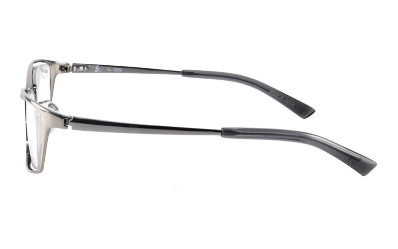 No.009は、フルリムとナイロールの特長を合わせ持った立体感あるモデルです。素材は軽量で耐久性に優れたβ-チタンを使用。くるっと曲がった独自のR形状ヒンジが、しっかりホールドしながらもこめかみを圧迫しない、軽やかな着用感を実現します。