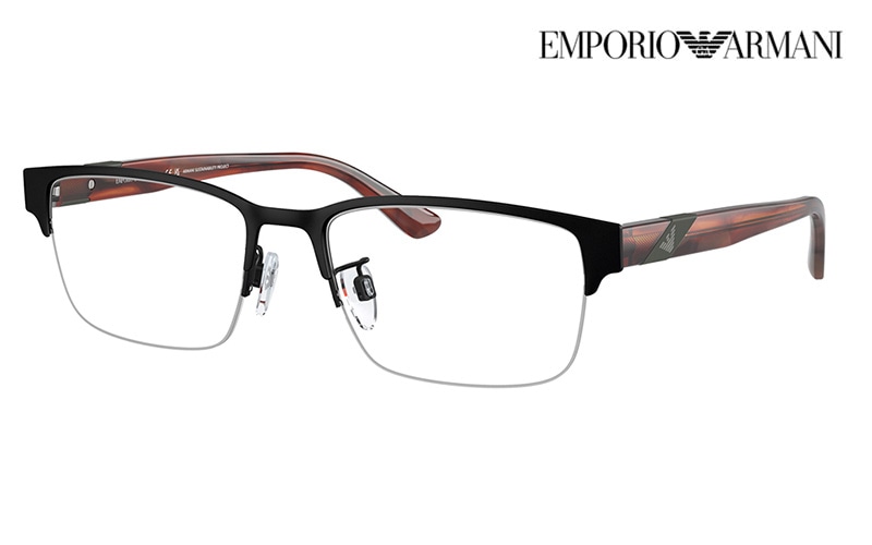 EA1129は、メタルのハーフリムにプラスチックのテンプルを組み合わせた現代的なデザインのモデルです。 テンプルには斜めにカットしたメタルパーツが配置され、サイドビューもすっきりとシャープに見せてくれます。フラットメタル製のフロント部分は、スポーティでスマートカジュアルな印象を与えます。