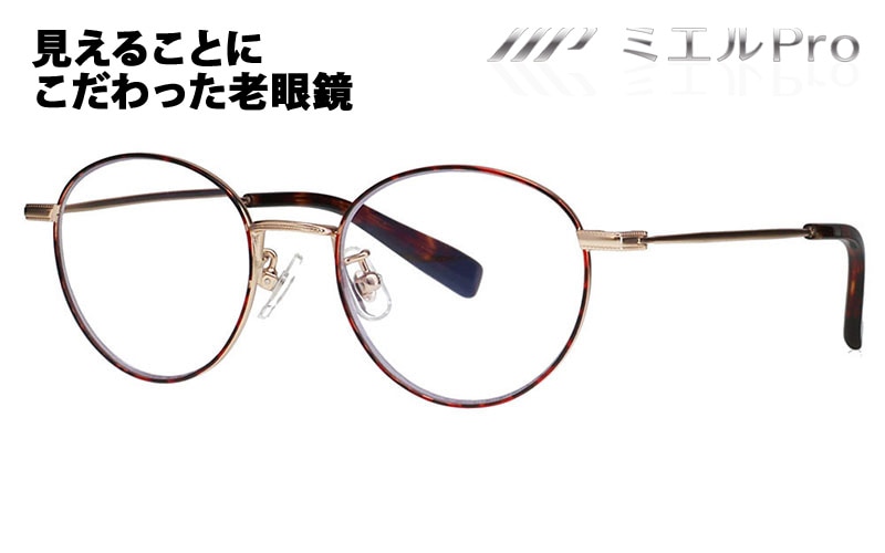 一般的な老眼鏡は単焦点レンズを採用しており、一定の距離でしかピントが合いません。そのため、老眼鏡を付けたり外したりする動作が多くなり、老眼の進行具合によっては異なる度数を複数使い分ける必要があります。『ミエルPro』の累進多焦点レンズは、複数の度数が同心円状に配置され、中心から外側に向かって徐々に弱くなる構造。この構造により、手元から少し離れた場所まで見えやすく、老眼鏡を付け外すことなく快適に使用できます。『ミエルPro』はフレームにもこだわり、軽量で弾性に優れた素材を採用することで、長時間の使用でも疲れにくく、ストレスを感じさせにくい設計です。老眼鏡に見えないおしゃれなデザインで、顔にフィットしやすい形状展開です。レンズには、傷に強い「ハードコーティング」、紫外線をカットする「UVカット」、青色光をカットする「ブルーライトカット」、視界を自然な色味に保つ「クリアコーティング」を施しており、長く快適にお使いいただけます。普段から老眼鏡をお使いの方、老眼が進行し老眼鏡の買い替えを検討している方、老眼鏡の付け外しを煩わしく感じている方、度数の異なる老眼鏡を使い分けている方におすすめのメガネです。