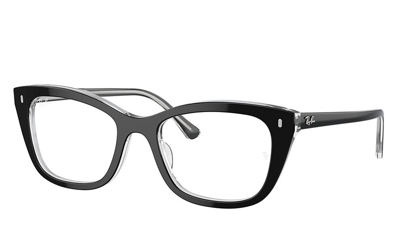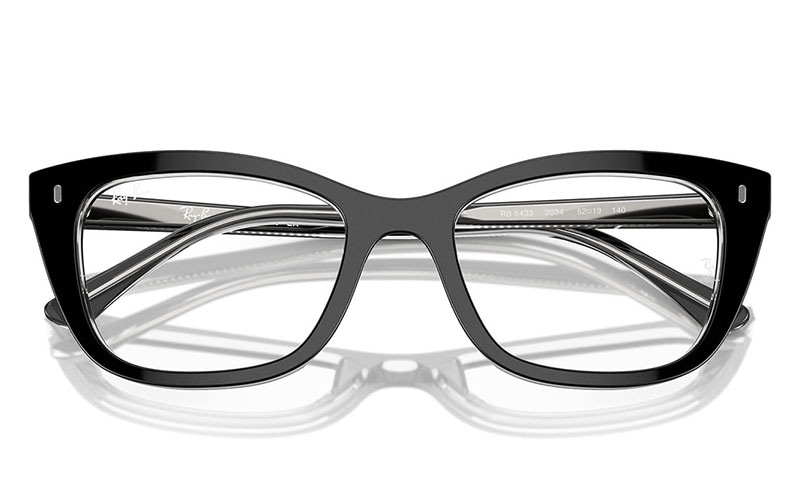 Ray-Ban RB5433 Optics は、洗練されたモダンなデザインが特徴で、主張したい人に最適です。枕の形をしたフレームはすべての顔の形に引き立てられ、透明色に黒は洗練感を加えています。