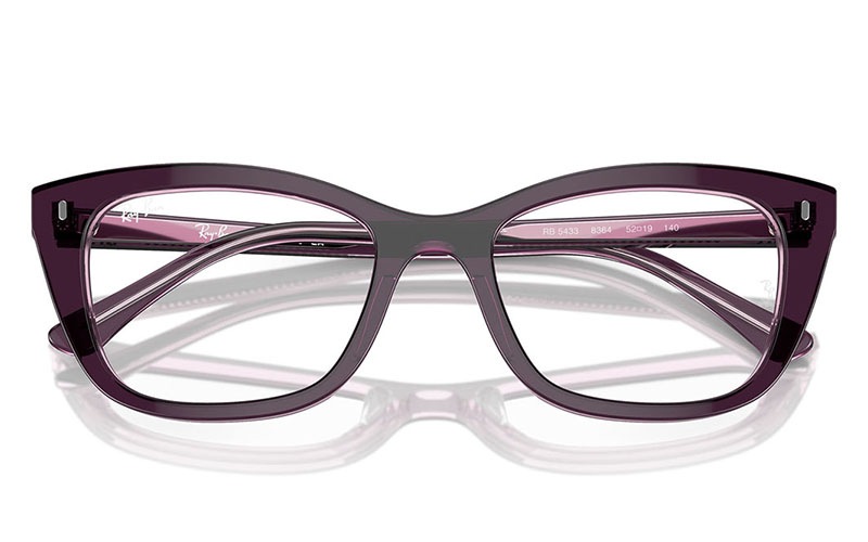 Ray-Ban RB5433 Optics は、洗練されたモダンなデザインが特徴で、主張したい人に最適です。枕の形をしたフレームはすべての顔の形に引き立てられ、透明色に黒は洗練感を加えています。