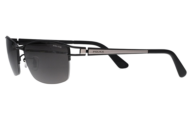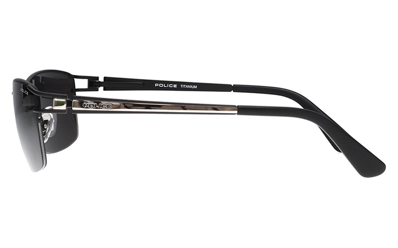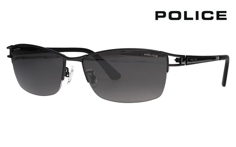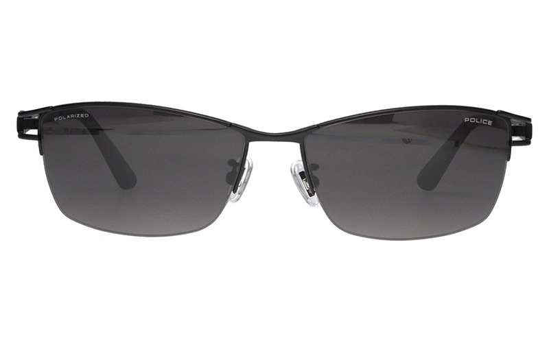 SPLQ03Jは2025年モデルの新作サングラス。POLICEらしいシャープなスクエアシェイプのナイロールフレームに、異なる質感を組み合わせた二股ヨロイとテンプルのデザインがアクセントです。