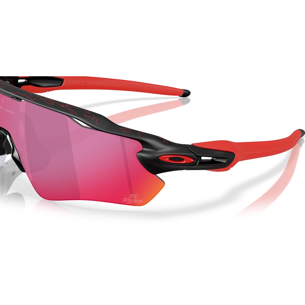 極限まで歪みを抑え、紫外線・有害光線(~400nm)を100%カットし、高い耐衝撃性を持つ「High Definition Optics (HDO)」レンズは、アメリカ規格協会(アイウェア工業規格)のテスト基準を大きく上回ります。オリジナルのRadar(ラーダー)アイウェアには、世界のトップアスリートの協力を得て、この10年間に得た研究の成果を全て結晶させました。縦に広げたレンズのRadar EV(ラーダーイーブイ)は、その上部の周辺視界エリアを広げることで、パフォーマンスの伝統に新たなマイルストーンを打ち立てました。